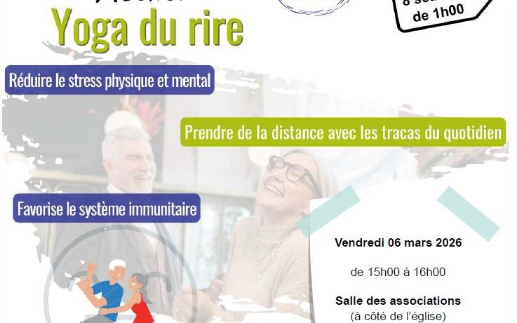 La MSA Service Poitou organise un atelier "Yoga du Rire". Réduire le stress physique et mental, prendre de la distance avec les tracas du quotidien, favoriser le système immunitaire. Gratuit. Pour tous dès 60 ans.