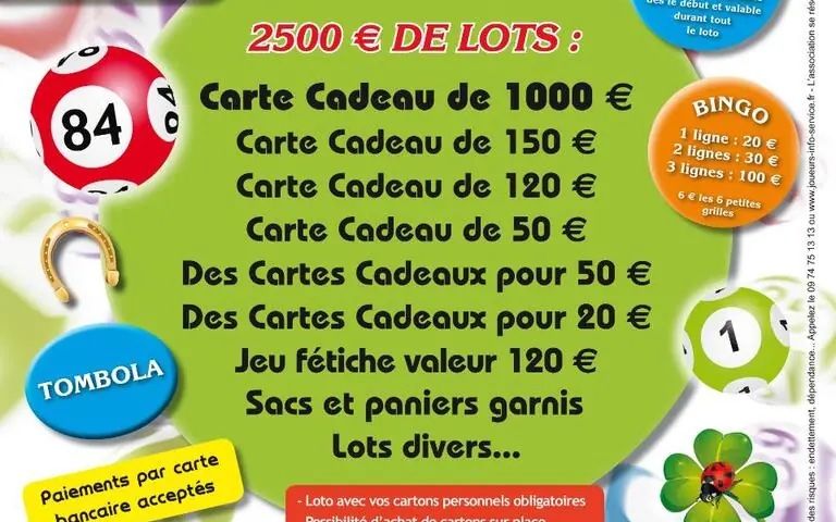 2500€ de lots. Animé par Amandine RDV Loto.