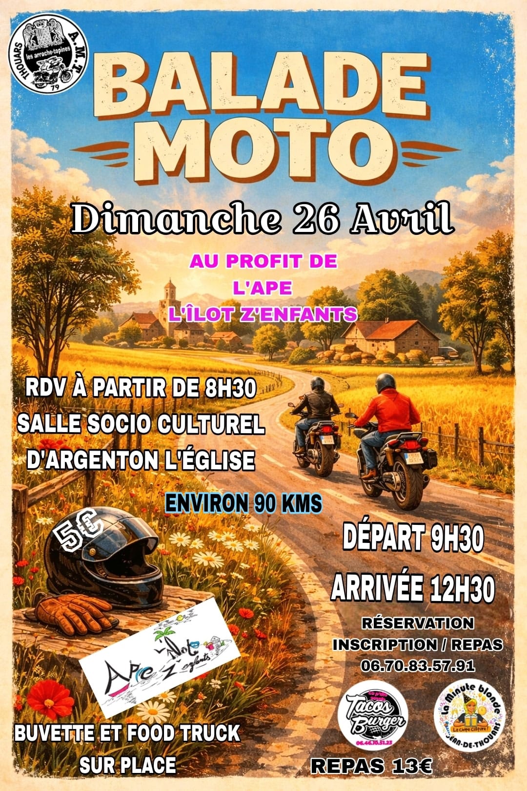 Balade moto organisé par l'AMT au profit de l'APE l'îlot z'enfants. Buvette et food truck à l'arrivée.